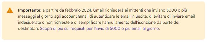 A partire da febbraio 2024, Gmail richiederà l'autenticazione dell'email per l'invio di messaggi agli account Gmail. Se si inviano email a questi account, saranno necessari ulteriori requisiti, tra cui l'implementazione di una policy DMARC, l'allineamento con SPF e DKIM, e la possibilità per i destinatari di annullare l'iscrizione con un clic. Similmente, Yahoo! introdurrà requisiti di autenticazione delle email entro l'inizio del 2024 per migliorare la sicurezza e ridurre il flusso di messaggi indesiderati nelle caselle email degli utenti.
